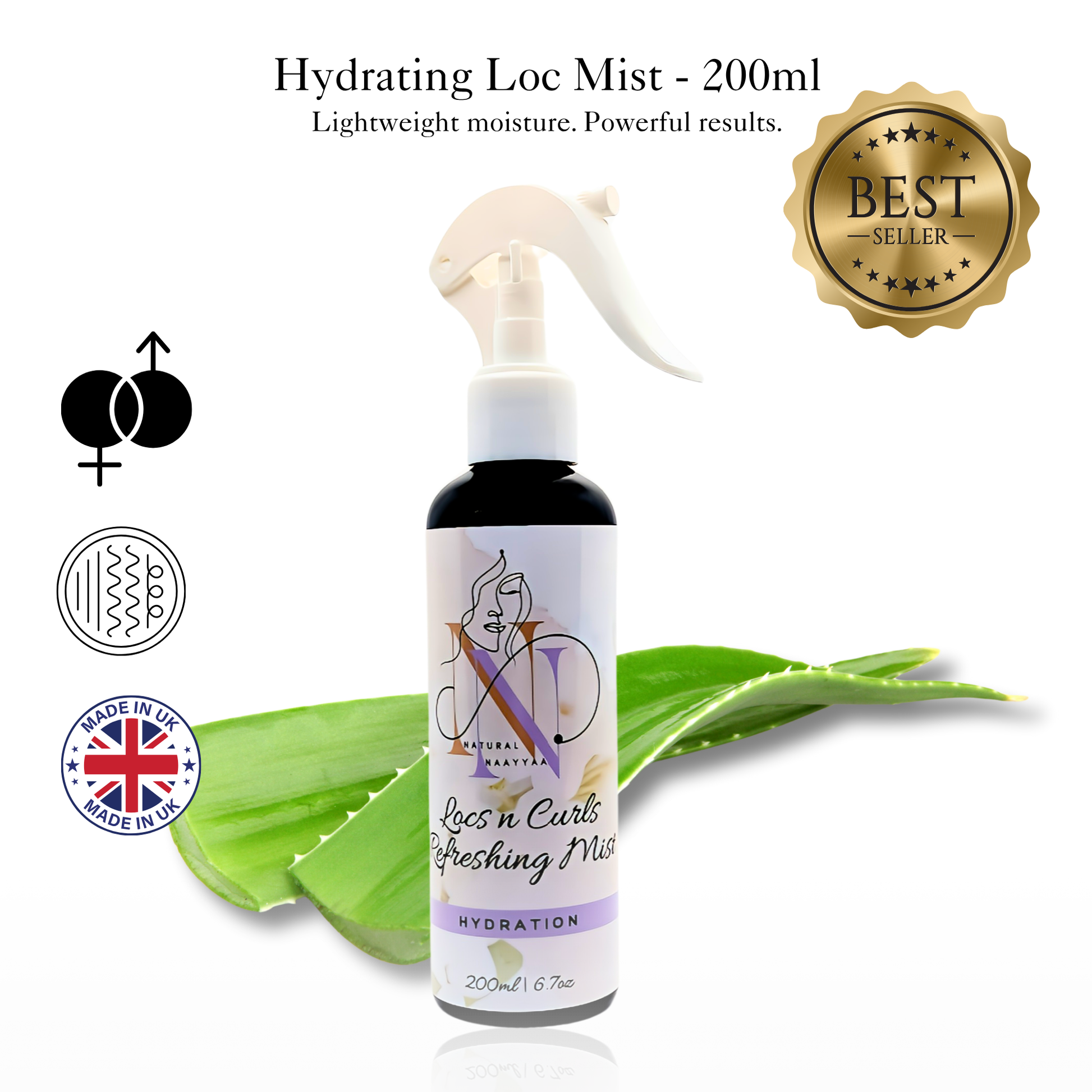 Say goodbye to dryness, breakage, and dullness. Our Hydrating Hair Mist is your go-to daily moisturiser — designed to hydrate without weighing your hair down. Whether your hair is curly, coily, wavy, or straight, this mist restores moisture, softness, and shine while helping to prevent breakage.